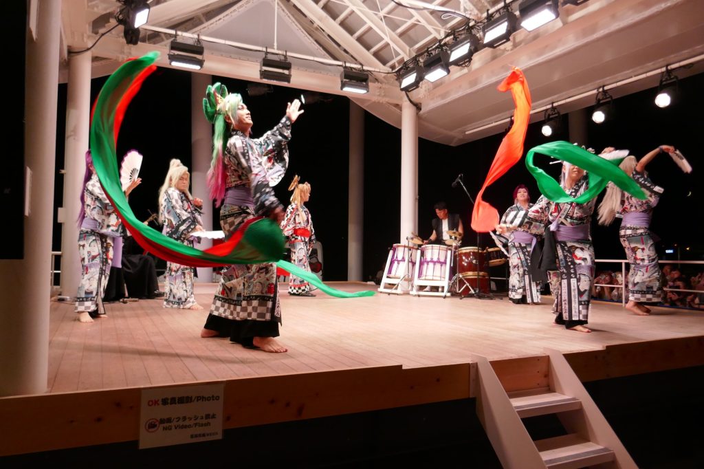 電脳和風ウィーク2日目は、恋川純さん率いる大衆演劇の恋川劇団。ポップアップ南ステージの開幕依頼 最高の人手と言われました。大声援。芸も踊りに三味線に群舞など。なんと彼らは舞台合わせを一度も無しで、いきなり舞台に出て踊り、魅せました。