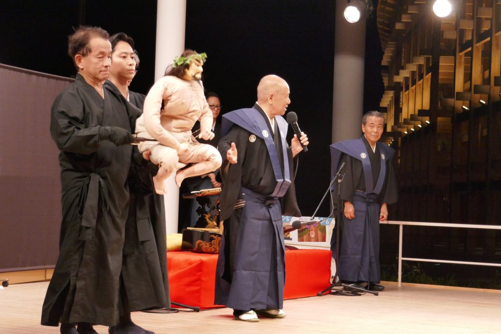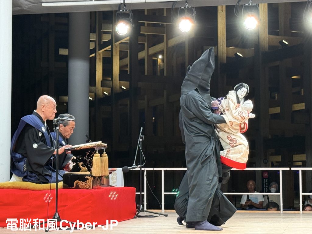 文楽でキリストの生涯を描く、豊竹若太夫師匠が作られた「ゴスペル・イン・文楽」。万博ならではの世界の音楽が聴こえる中で、日本の文楽をアピールしました。本当に間近で、人形の指使いや、足まで見られました。下駄を使わずに、ドンドンと足音を鳴らす迫力。大屋根リングから見る方もたくさん。ふれあいコーナーも大好評でした。